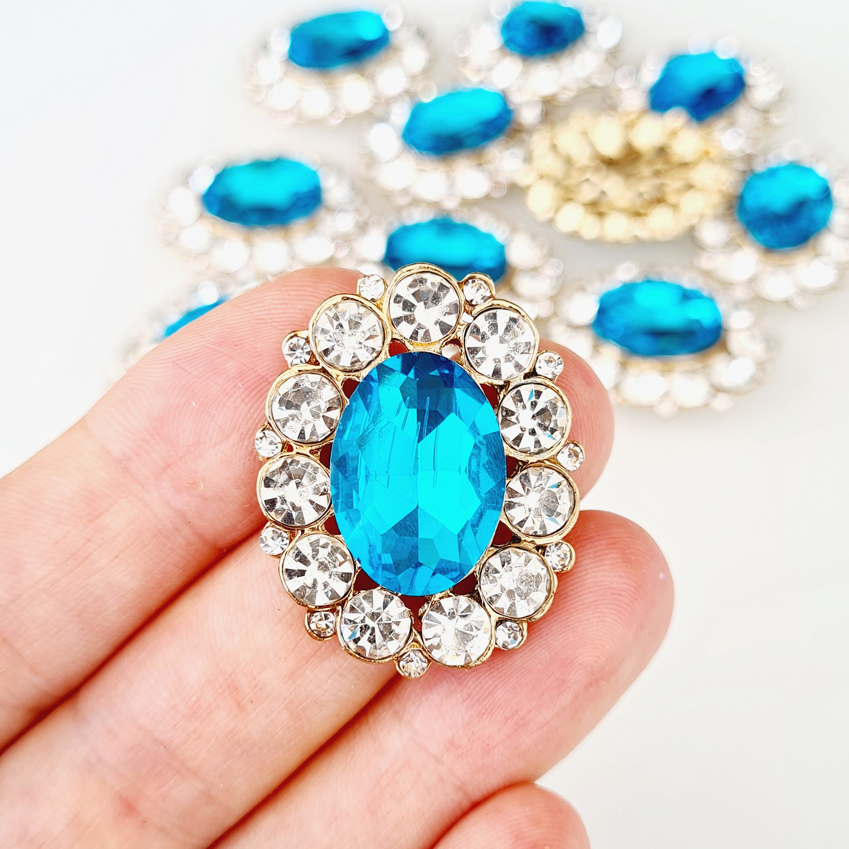 Колір - золота основа з прозорими стразами + блакитний камінь