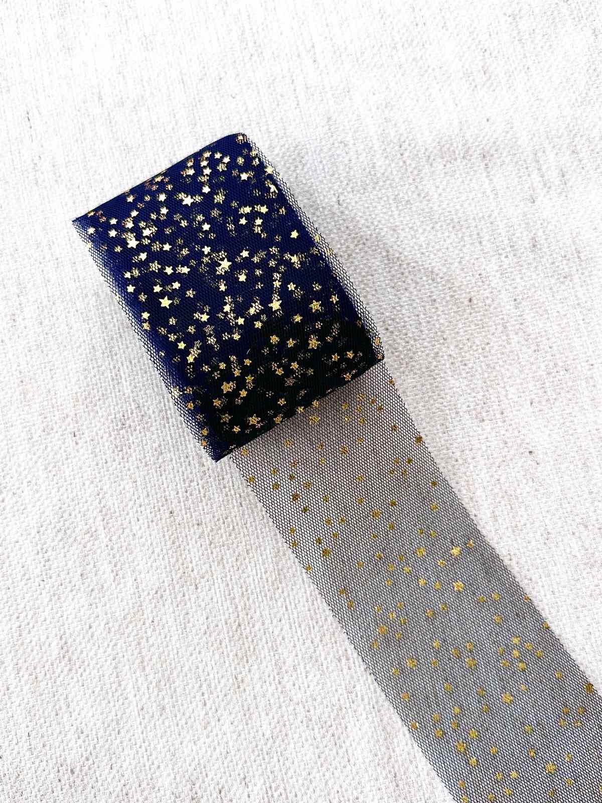 Теги: Фатин, темно, синій, в золоті, зірочки
