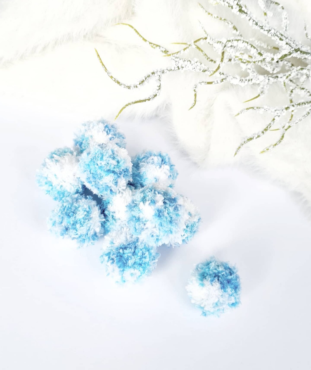 Ручна робота! Матеріал - в"язана плюшева нитка, наповнена холофайбером Розмір - діметр 3см Колір - біло блакитний мікс Ціна вказана за 1шт.
