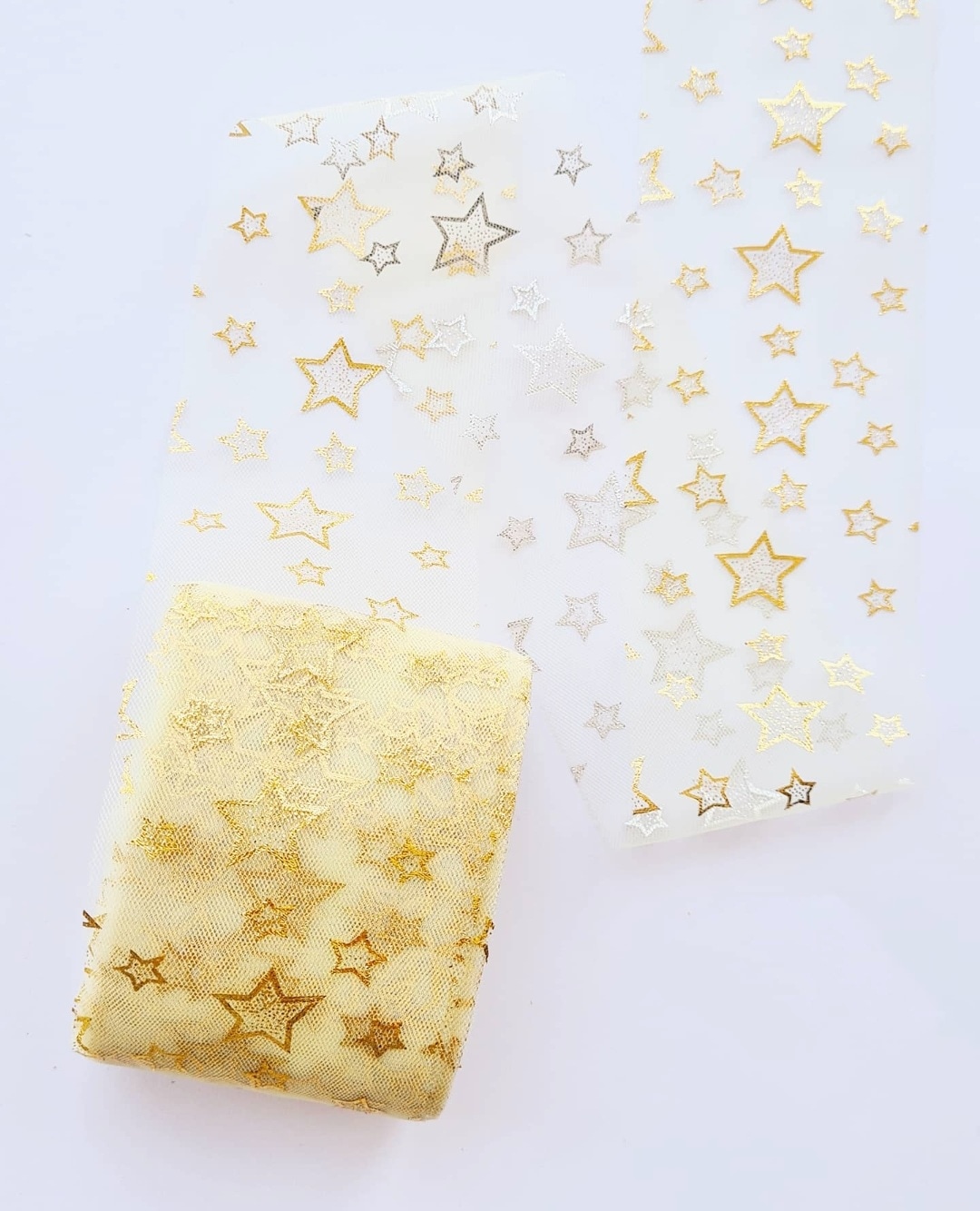 Колір - світло жовтий в золоті зірочки; зворотня сторона в срібні зірочки