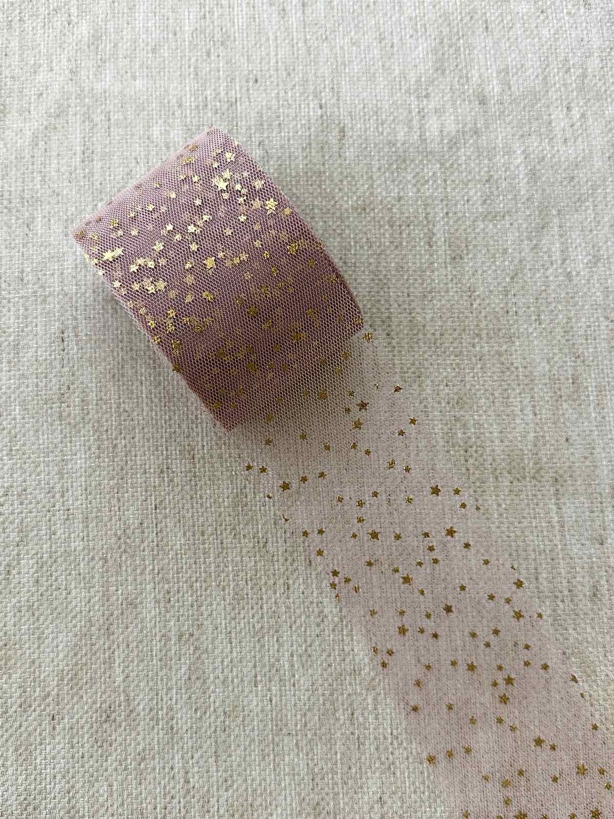 Теги: Фатин, пудровий, в золоті зірочки