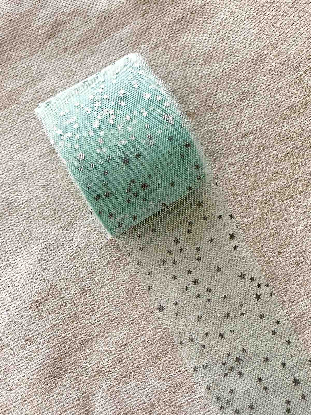 Теги: Фатин, світлий тіффані, в срібні зірочки