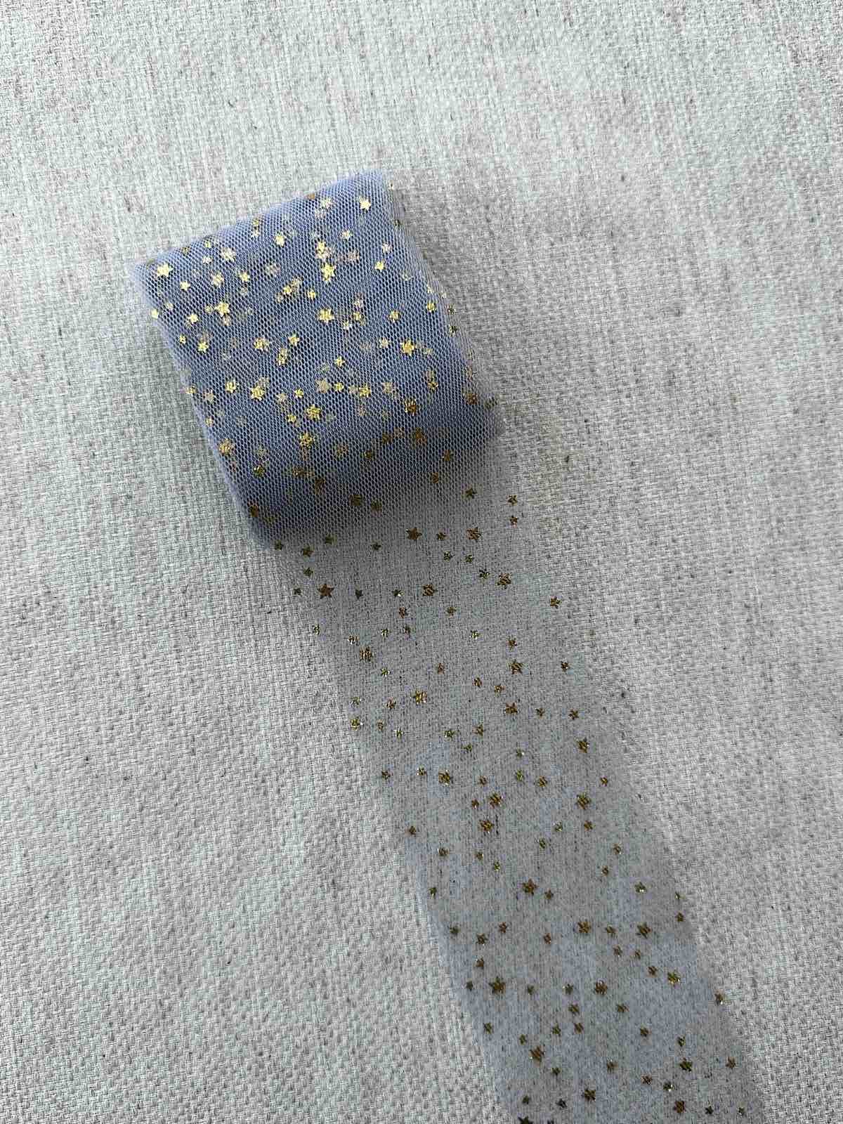 Теги: Фатин, сизого кольору, в золоті зірочки