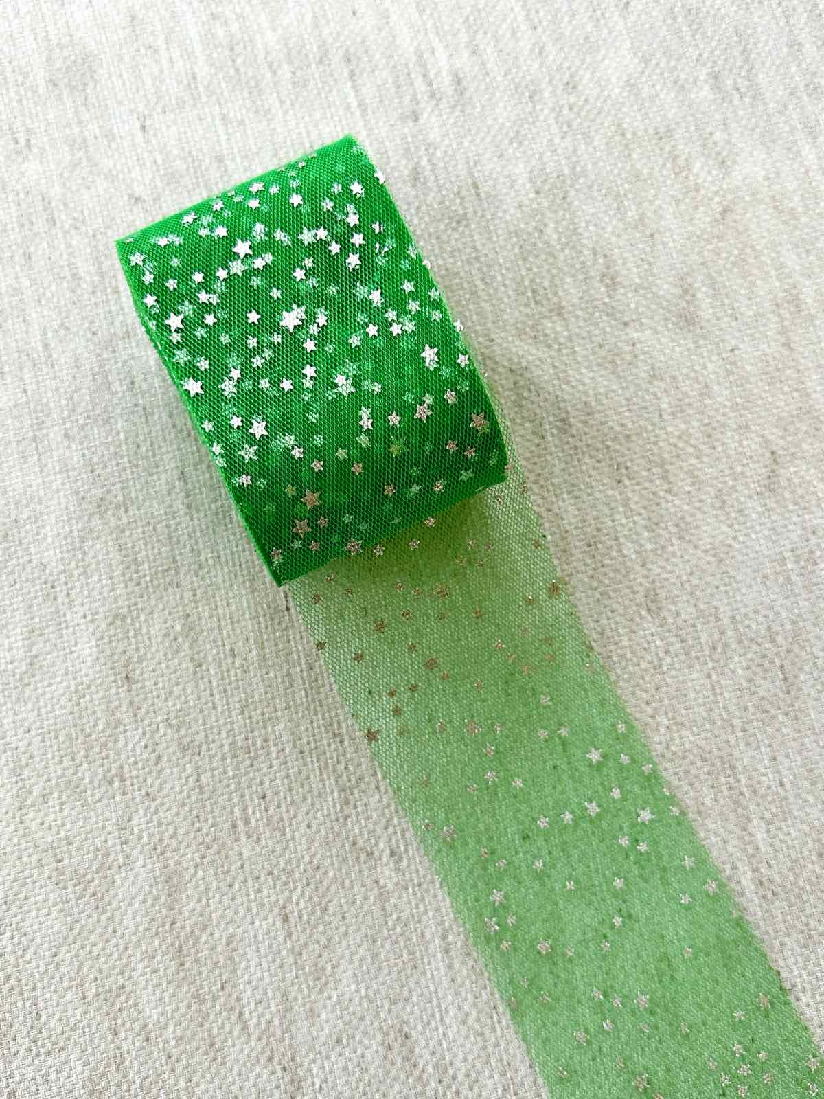 Теги: Фатин, яскраво зелений, в срібні зірочки