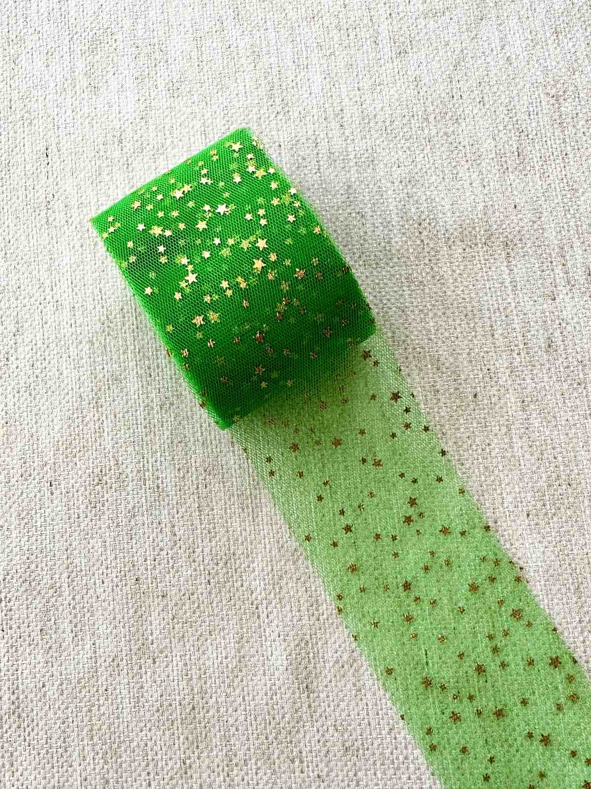 Теги: Фатин, яскраво зелений, в золоті зірочки