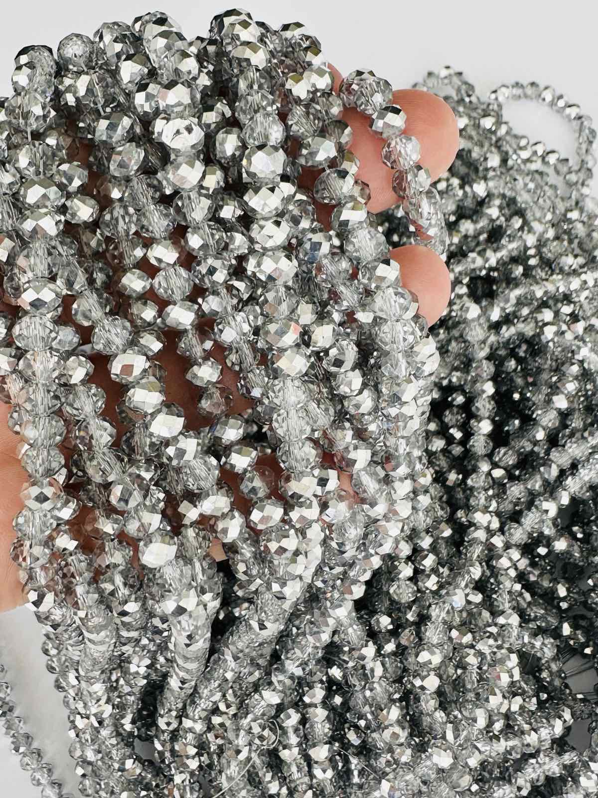 Кришталеві намистини 4,4х6мм (Рондель) срібного кольору