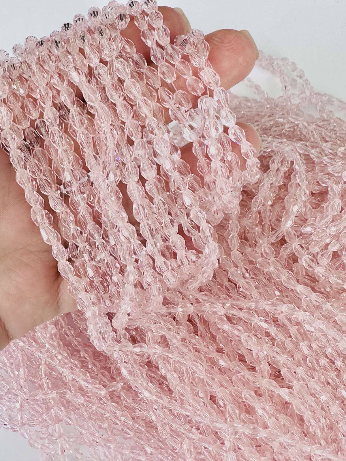 Кришталеві намистини 4х6мм (Капля) ніжно-рожевого кольору