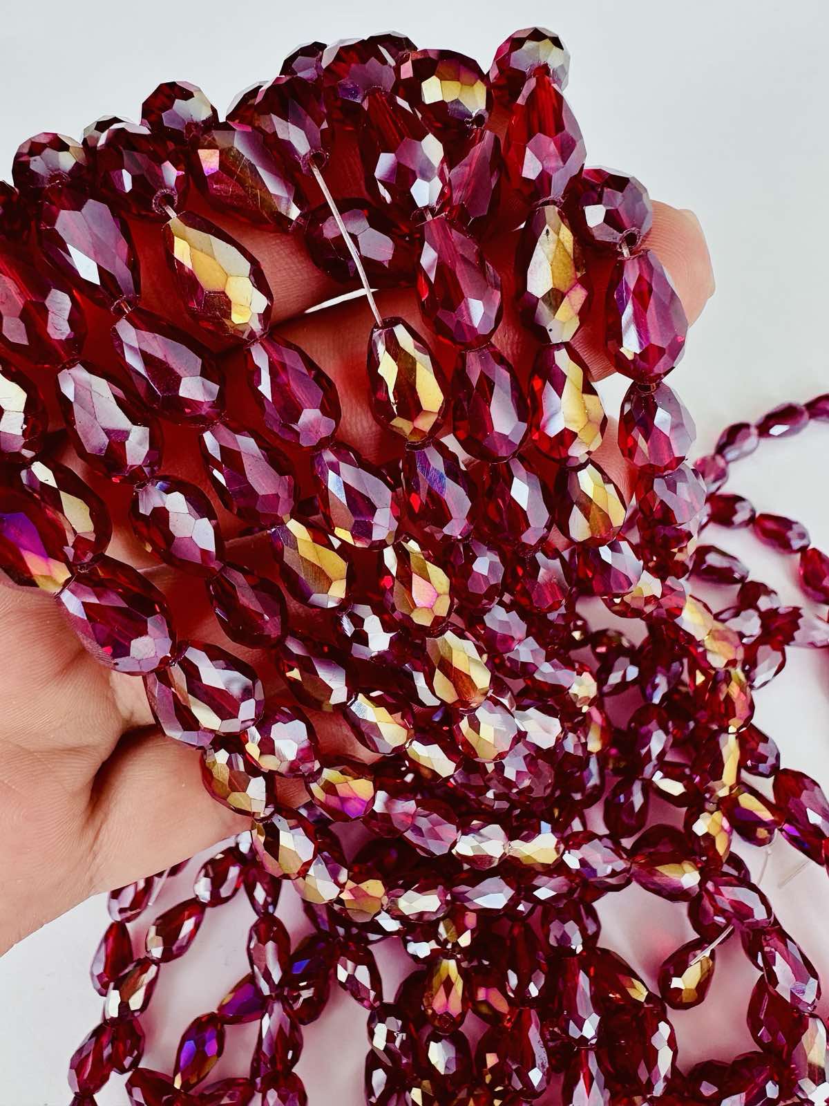 Кришталеві намистини грановані, до складу яких входить кришталь в різному співвідношенні зі склом, завдяки чому, намистини з кришталю мають яскравий блиск і ефектно переливаються безліччю різнокольорових іскор під променями світла. За допомогою даних матеріалів виріб отримує зовсім інший зовнішній вигляд, - більш елегантний, розкішний і дорогий.