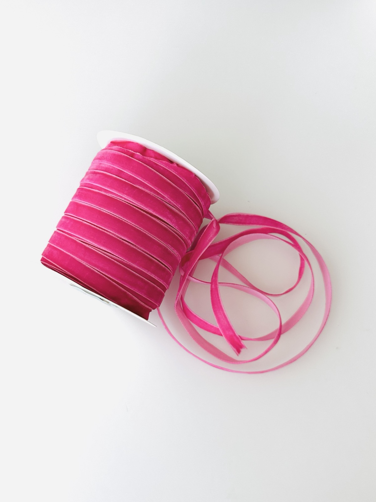 Оксамитова стрічка 1см яскраво рожевого кольору