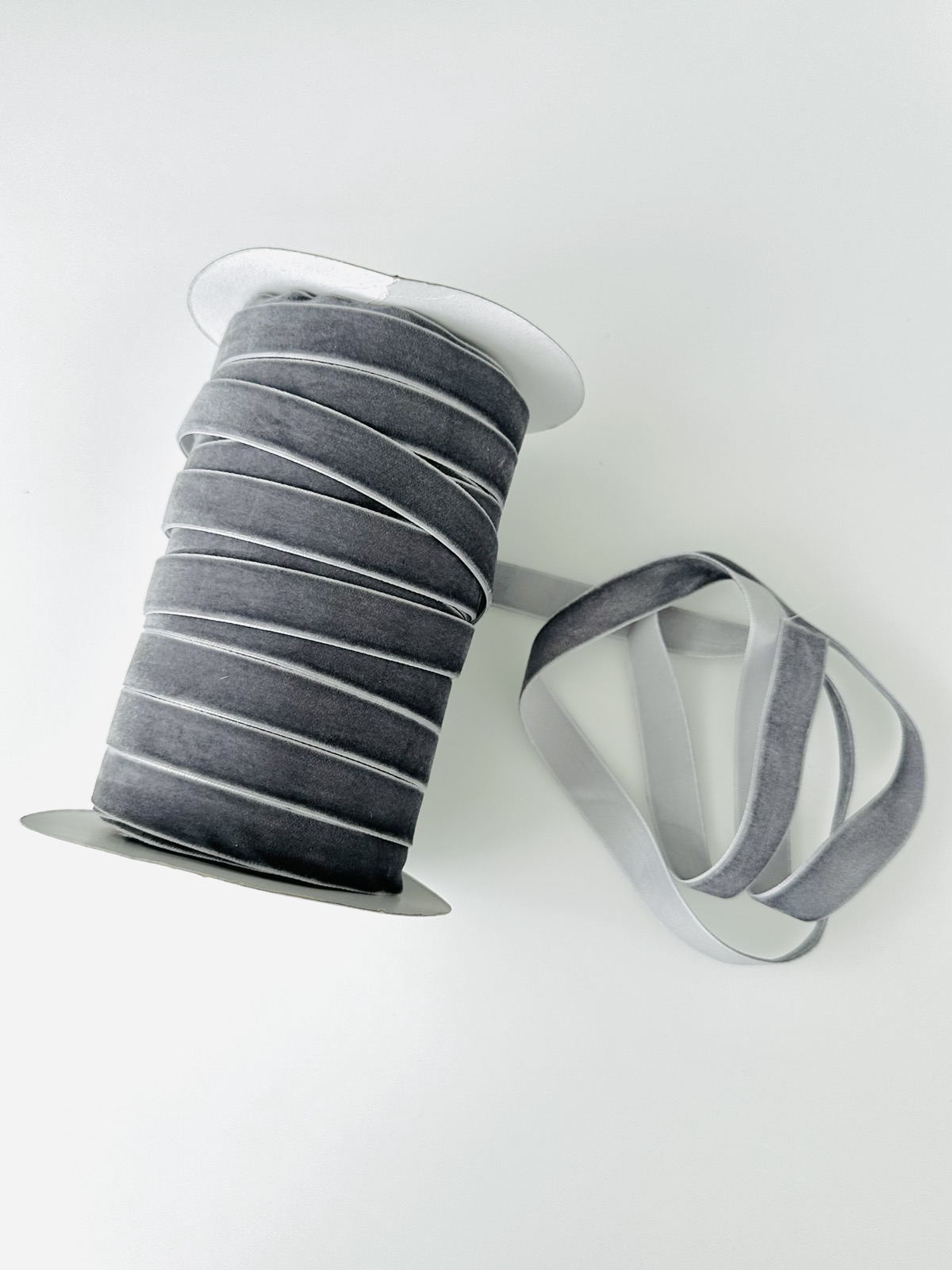 Оксамитова стрічка 1,5см сірого кольору