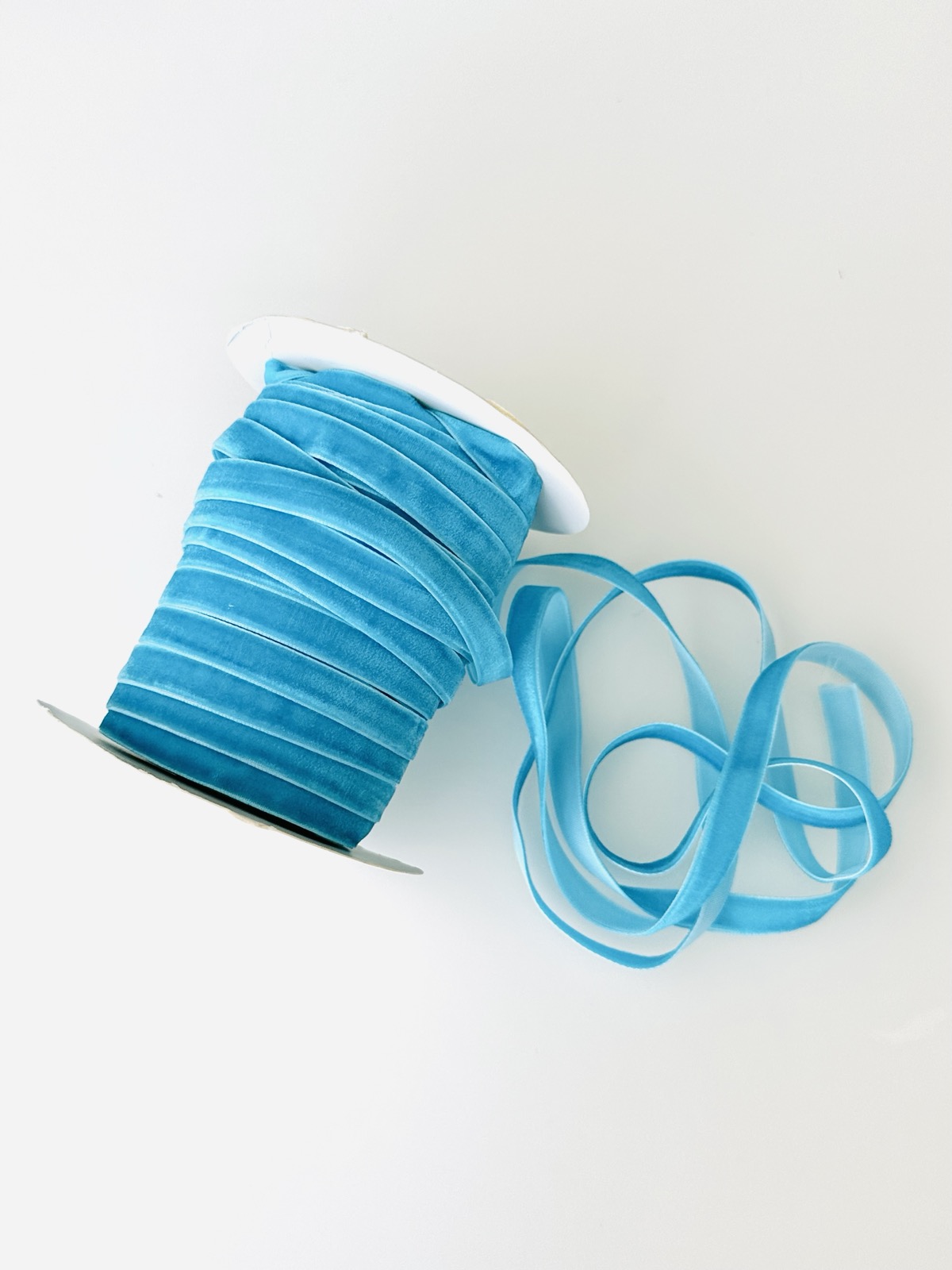 Теги: Оксамитова стрічка, 1см, блакитного кольору