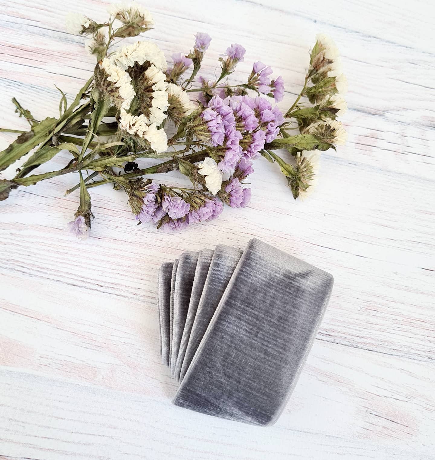 Теги: Оксамитова стрічка, 4см, сірого кольору