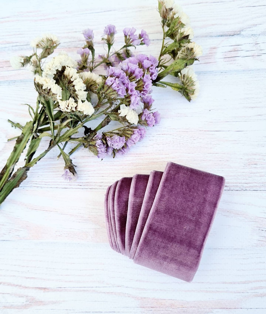 Теги: Оксамитова стрічка, 4см, лавандового кольору