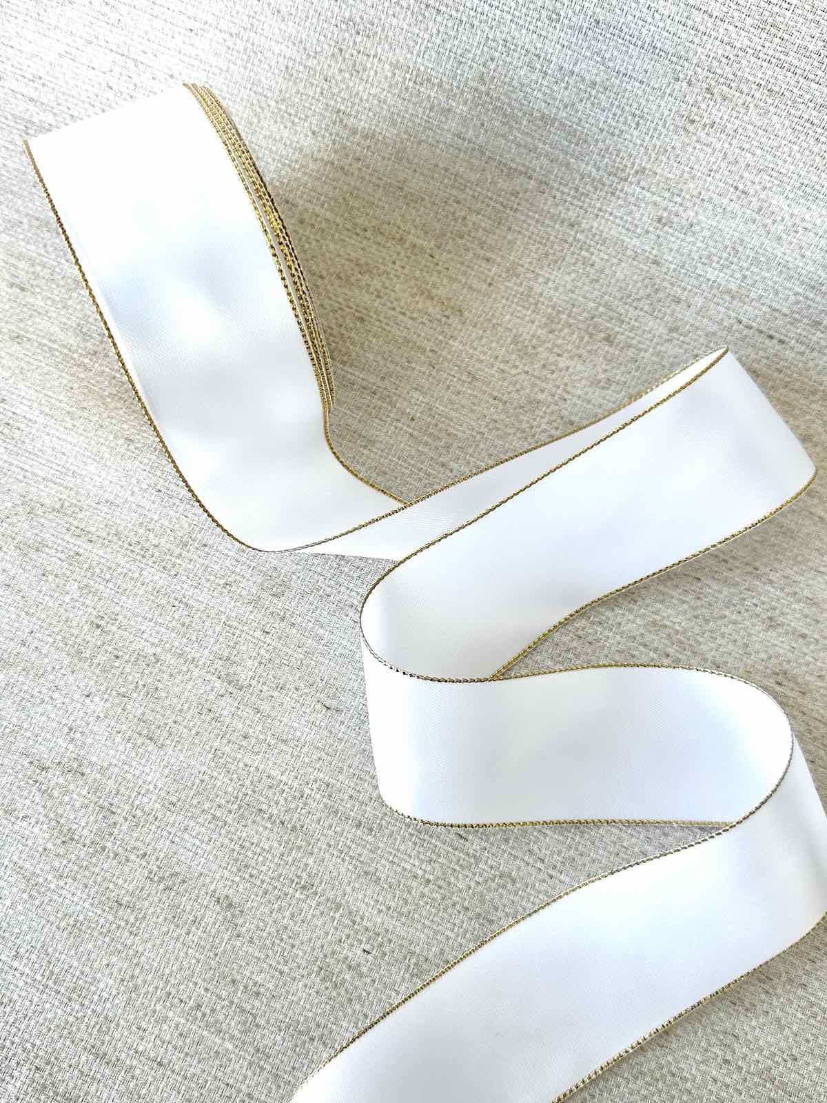 Сатинова стрічка, шириною 3,8см, білого кольору з золотим люрексом