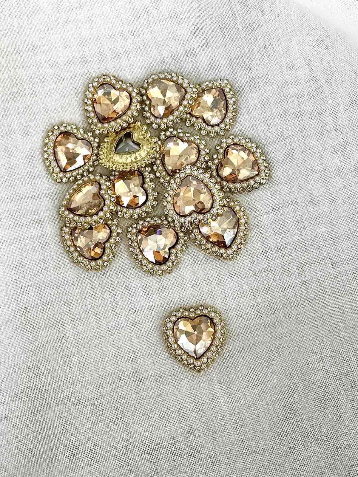 Стразова серединка "Сердечко", розмір 2,3х2,4см, золотистого кольору