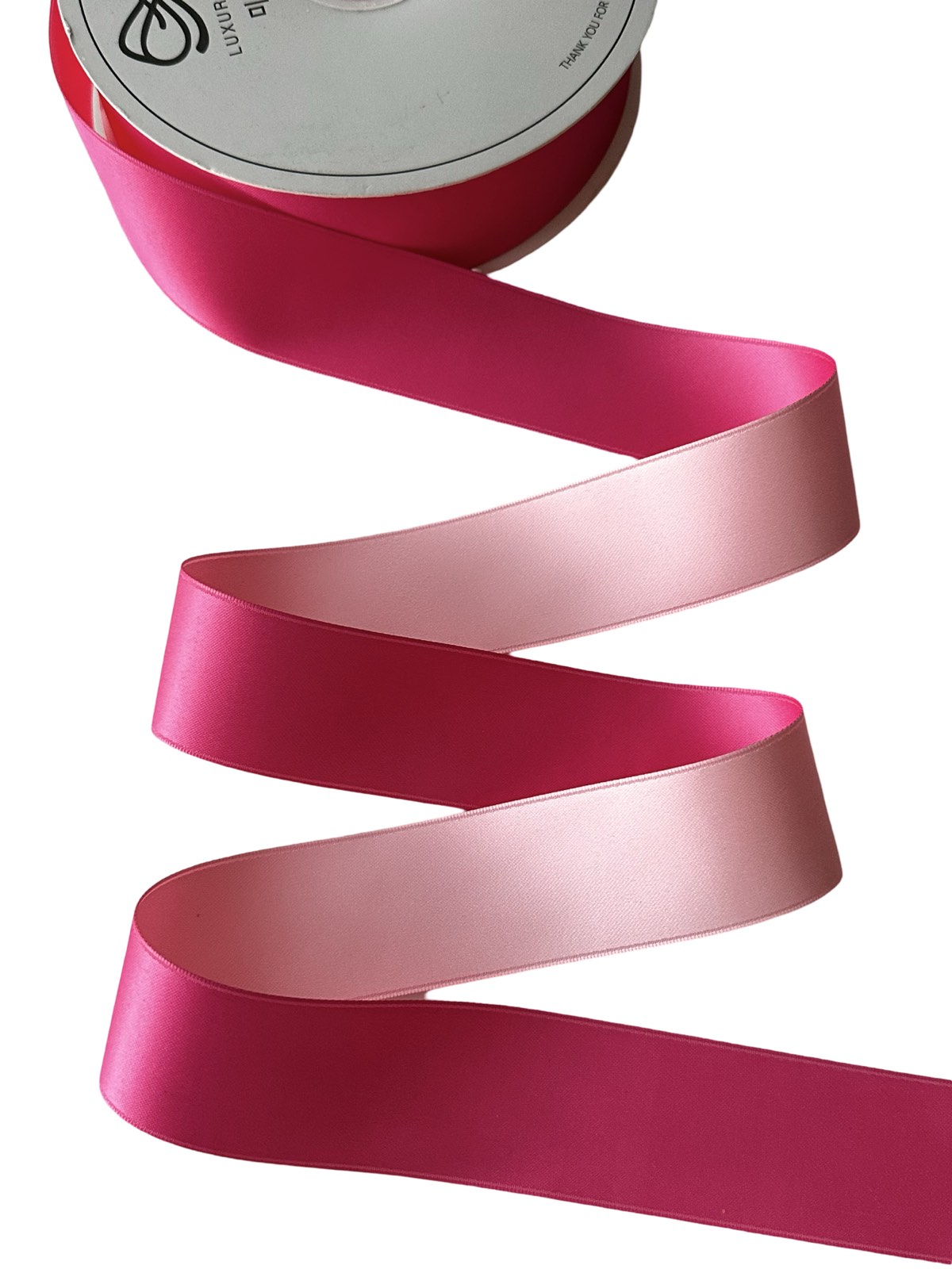 Стрічка сатинова, двостороння, розмір 3,8см, колір рожевий+ніжно рожевий