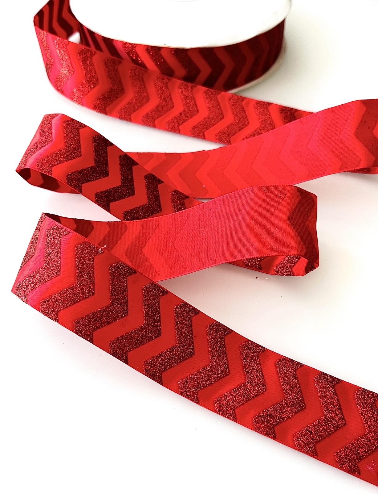 Теги: Стрічка, сатинова з глітером, шириною 3, 8см, червоного кольору