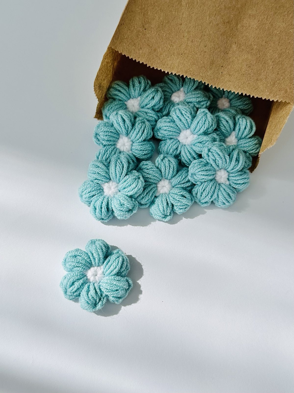 В'язані квіти колір Тіффані ручної роботи